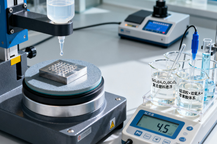 对于要求极高的应用,如医疗植入物,传统机械抛光可能不足。新型光催化化学机械抛光(PCMP)技术采用SiO₂ Al₂O₃ CeO₂复合磨料,能使钛合金表面粗糙度(Sa)达到0.286nm,材料去除率高达20.58μm/h,实现了低粗糙度和高材料去除率的双重目标。