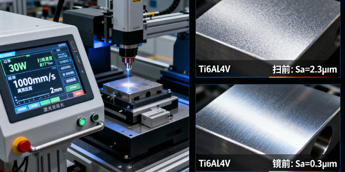 连续激光抛光技术通过优化参数(功率P=30 W,扫描速度v=1000 mm/s,离焦距离z=2 mm),可使Ti6Al4V钛合金的表面粗糙度显著降低约87%,摩擦因数降低约16%。这种技术特别适用于航空航天和医疗器械等高端领域。